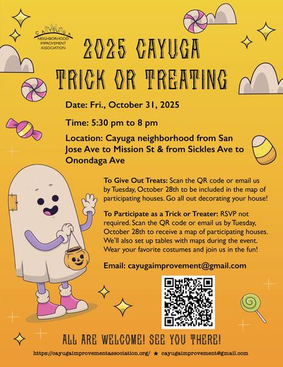 Please consider becoming a member or renewing your membership to the Cayuga Improvement Neighborhood Association (CNIA). As a supporting member, your contributions help support our events.